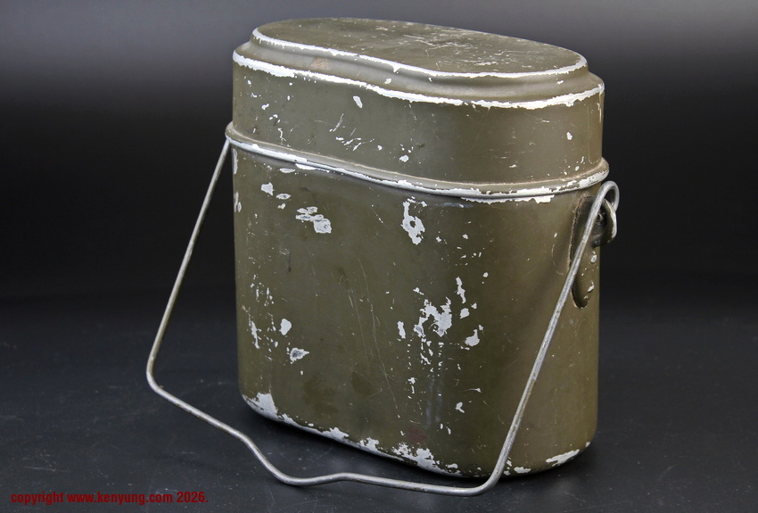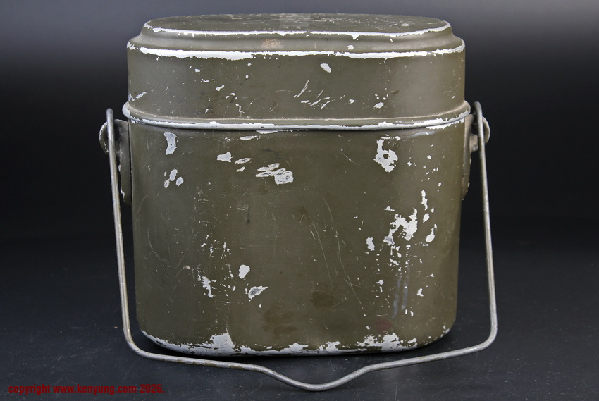 背景M31饭盒于1931323日正式推出,以一战M1910饭盒为基础,但体积稍小,容量减少了约1.5升。M31饭盒由两部分组成,一个小的可拆卸浅顶盖,可以兼作盘子或煎锅,另一个大的深底隔间,可以更多地用作碗或锅。最初M31饭盒是用铝制造的,但后来由于其他更重要的物品需要铝,餐具套件开始用钢制造,尽管铝餐具仍在继续制造和使用。条例规定了携带餐具的各种方式,最常见的形式是将其固定在悬挂在承载腰带上的面包袋上,尽管也使用了其他方法。当发放时,餐具套装附带一条皮带,用于将其固定在个人身上。遵循一句古老的格言,军队靠肚子奔跑,M31餐具必须被视为所有个人装备中最重要的一件。值得注意的是:条例授权每位作战士兵每天获得口粮,这通常是由部队的移动野战厨房在战场上准备的,并分发给前线部队,但这在作战情况下并不总是可能的。因此,前线作战士兵将获得各种罐头口粮和一些面包,以备野战厨房的食物无法到达他们的阵地时单独携带。尽管条例规定了发给每个士兵的每日口粮数量,但随着战争的持续,任何食物都成为有价值的商品,满足需求变得越来越困难。