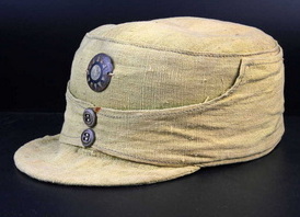 描述:100%原品。原始帽徽。小帽由12P草黄细平纹布制。中号,头围56-57(厘米)。有长影戳记,是长影建厂初期使用真品作为电影道具的很好例子。让图片说话...