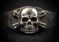 描述:100%原品。戒指由800银制成。中央高浮雕骷髅,两侧腿骨交叉相连。这款私人购买的非官方发行戒指,深受国防军和党卫军人员欢迎!让图片说话...