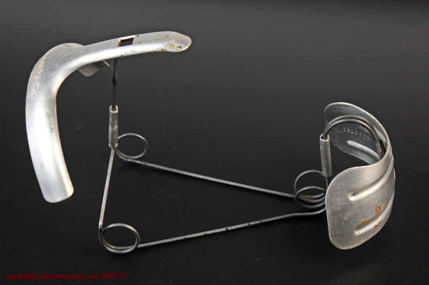 背景:当部队到达驻地时,按规定要从面具罐内取出面具,使用带有钢质弹簧的铝框架就安装在面具内以防止面具长时期在罐内存放而变形。