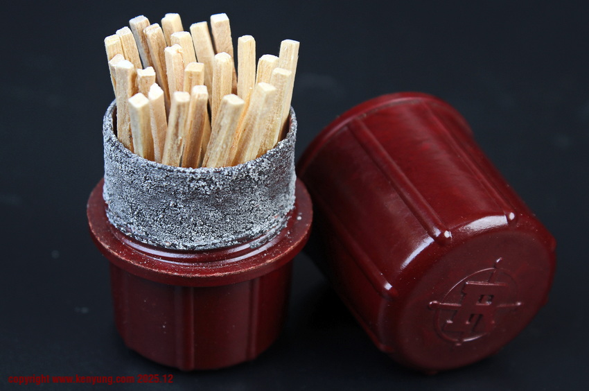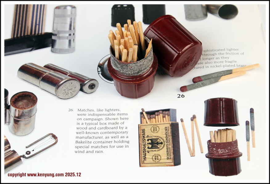 背景:火柴是几乎每个人都不可或缺的个人物品,除了吸烟的人之外,还可以用来生火、点蜡烛等。在第三帝国时期,有很多纪念性和装饰性的火柴盒出售,当时的报纸和杂志上也经常有这类商品的广告。这里展示的就是由当时著名的生产商采用木材制造的典型火柴。在风雨天气里这种胶木的火柴盒特别有用。