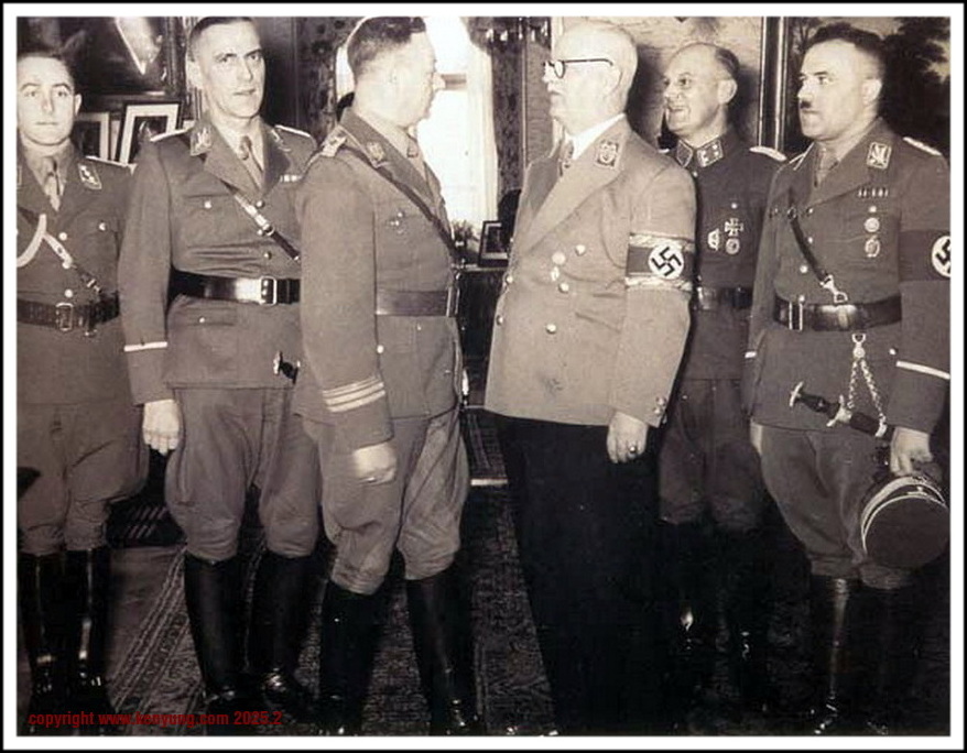 背景:在第三帝国期间,几乎所有政治和军事组织都批准使用开口双针爪带扣,不同的组织有各种不同的使用规范制度。 政治领袖腰带最初由巧克力棕色皮革制成,直到1939年选择哈瓦那棕色着色作为替代品。 各种政治组织(如NSKK和NSFK)也穿着类似的黑色腰带,扣的颜色是等级的标志,黄金等级高于白银等级。