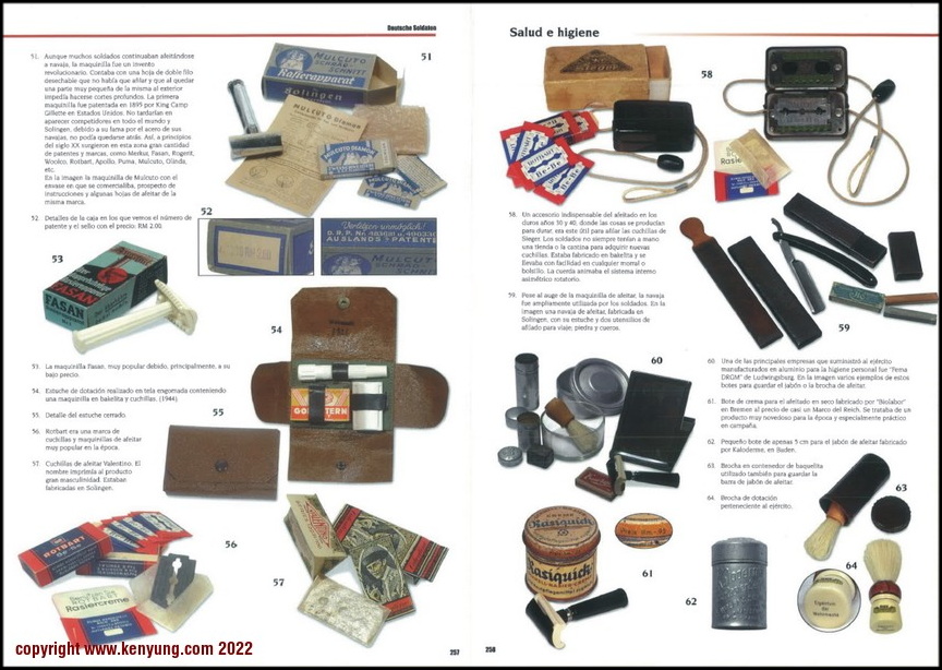背景:陆军最高司令部认为,德国士兵的整体整洁、制服、外表和清洁度非常重要,因此,个人和服装卫生用品要么在驻军食堂发放,要么以较低的成本提供。一些可用的个人和服装卫生用品包括脚粉、肥皂、梳子、剃须用具以及各种洗衣皂等。虽然这些类型的物品很容易获得,但似乎大多数人员更喜欢使用自己的个人私人购买的卫生用品。值得注意的是:由于清洗物品并不是唯一的选择,因此向各单位发放了一把标准的衣物鞭子,用来抽打衣物、毯子和其他织物上的灰尘和污垢,以保持其清洁。