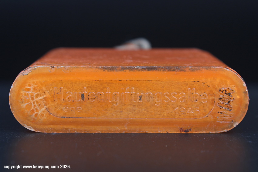 背景:1941年,一种新的皮肤消毒软膏被引入,旨在取代先前已有的皮肤消毒片。这种软膏是现成的,而消毒片在使用前需要准备。从消毒片到消毒软膏的转变从未完全实现,两种产品都在1941年至战争结束时发放。