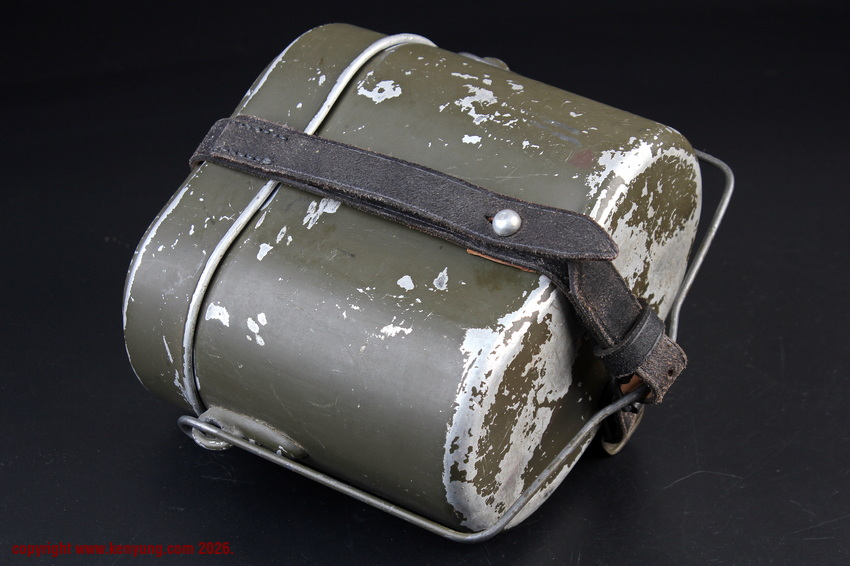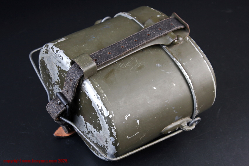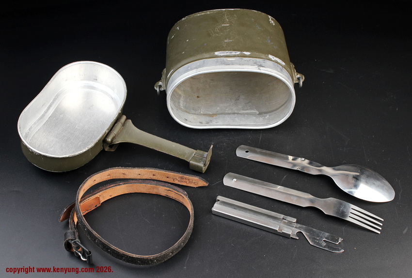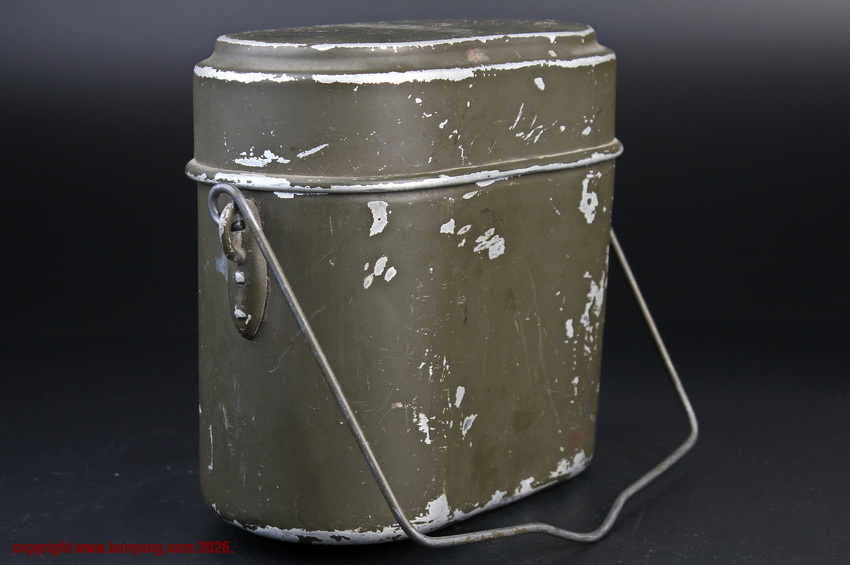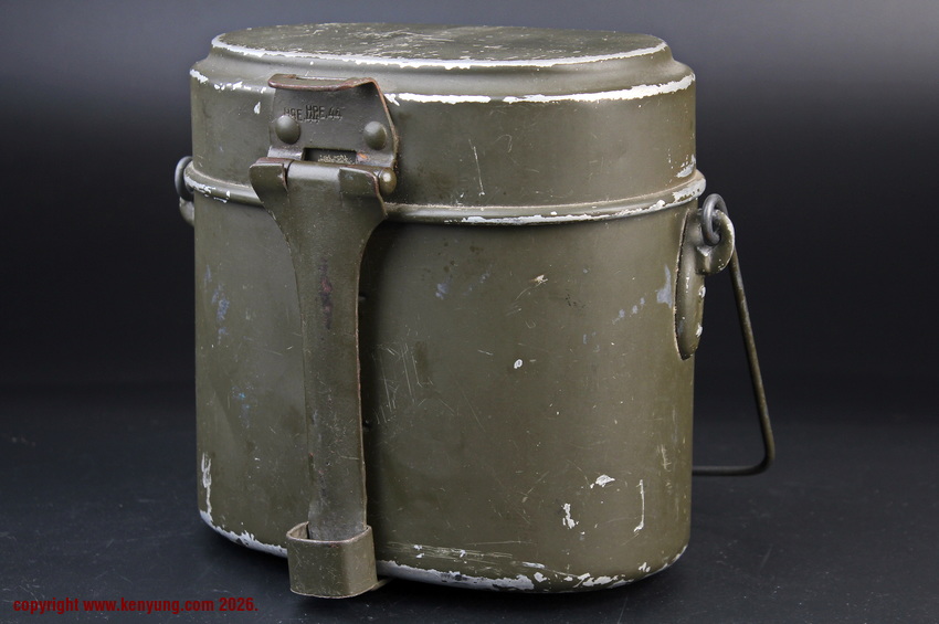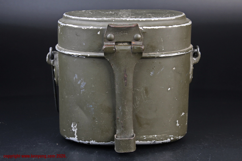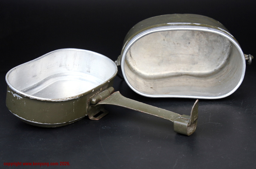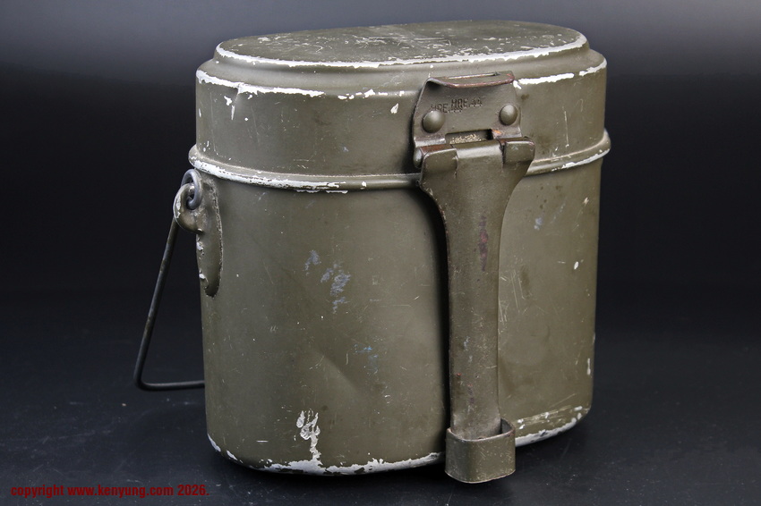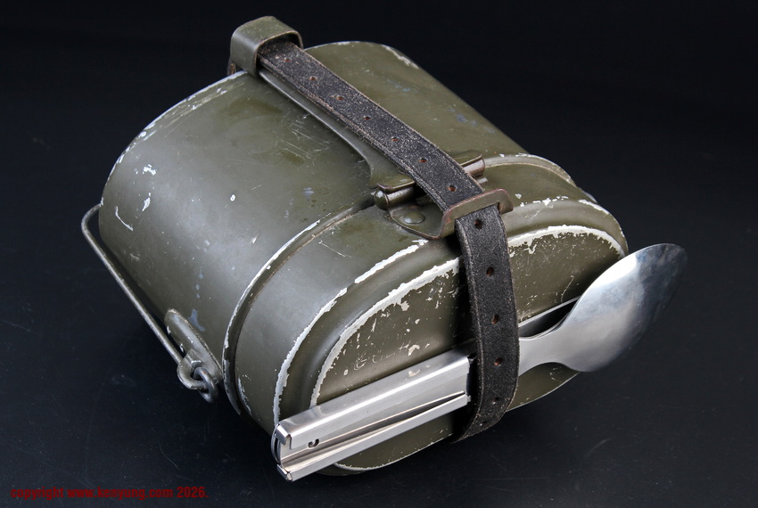背景M31饭盒于1931323日正式推出,以一战M1910饭盒为基础,但体积稍小,容量减少了约1.5升。M31饭盒由两部分组成,一个小的可拆卸浅顶盖,可以兼作盘子或煎锅,另一个大的深底隔间,可以更多地用作碗或锅。最初M31饭盒是用铝制造的,但后来由于其他更重要的物品需要铝,餐具套件开始用钢制造,尽管铝餐具仍在继续制造和使用。条例规定了携带餐具的各种方式,最常见的形式是将其固定在悬挂在承载腰带上的面包袋上,尽管也使用了其他方法。当发放时,餐具套装附带一条皮带,用于将其固定在个人身上。遵循一句古老的格言,军队靠肚子奔跑,M31餐具必须被视为所有个人装备中最重要的一件。值得注意的是:条例授权每位作战士兵每天获得口粮,这通常是由部队的移动野战厨房在战场上准备的,并分发给前线部队,但这在作战情况下并不总是可能的。因此,前线作战士兵将获得各种罐头口粮和一些面包,以备野战厨房的食物无法到达他们的阵地时单独携带。尽管条例规定了发给每个士兵的每日口粮数量,但随着战争的持续,任何食物都成为有价值的商品,满足需求变得越来越困难。